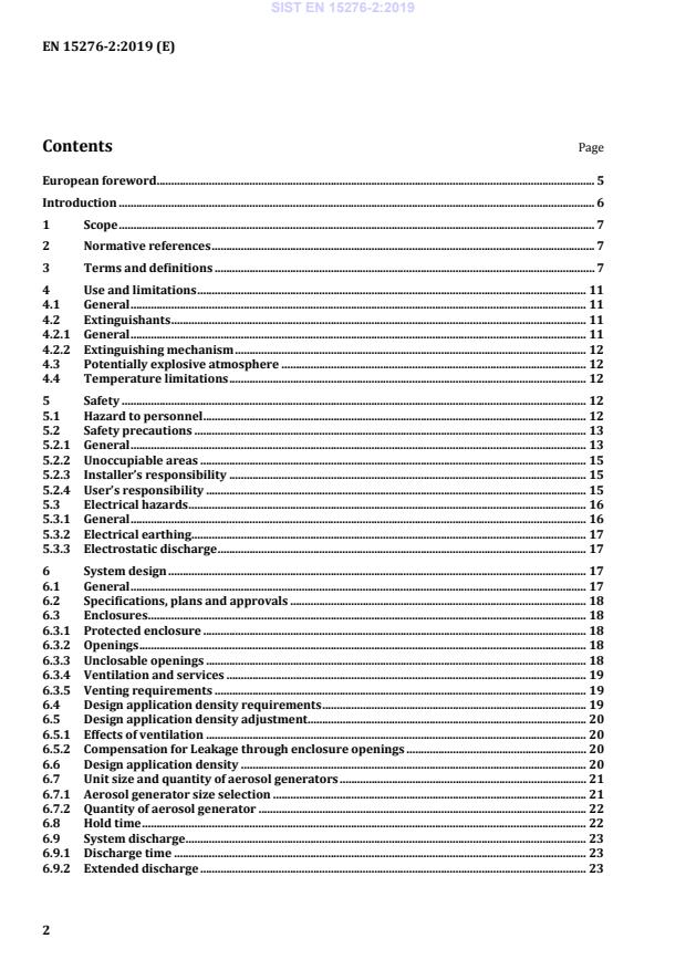 Keywords: EN 15276-2:2019, condensed aerosol extinguishing systems, fixed firefighting systems, design installation maintenance, total flooding, aerosol generators, system commissioning, inspection and maintenance.