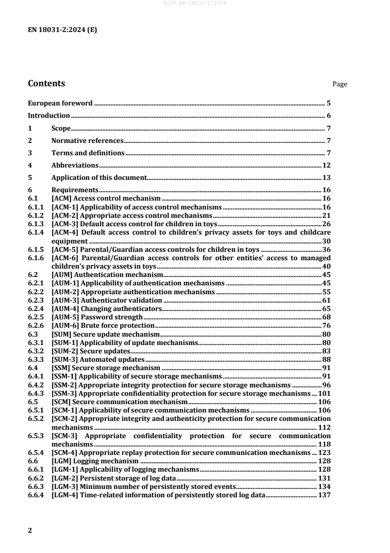 EN 18031-2:2024 structures requirements by mechanism and capability. Major areas include: