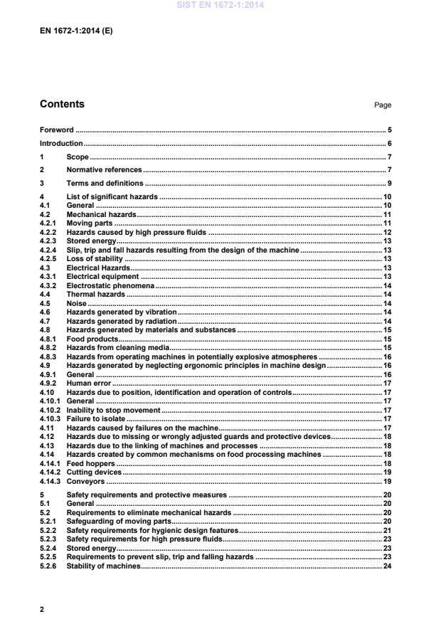 EN 1672-1:2014 covers a broad set of machine-safety topics relevant to food processing machinery: