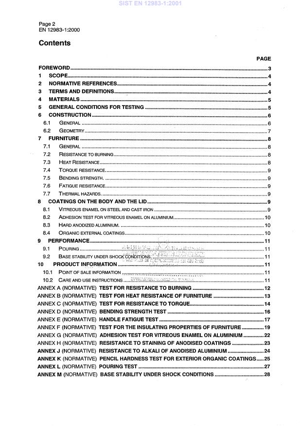 The EN 12983-1:2000 standard effectively addresses the safety and performance requirements for domestic cookware used on top of a stove, cooker, or hob. The scope of this document is comprehensive, encompassing a wide range of cookware types irrespective of the material or manufacturing method employed, thus catering to diverse consumer needs and preferences. By establishing these regulations, the standard ensures that manufacturers meet essential safety criteria, thereby protecting consumers against potential hazards associated with domestic cooking. One of the key strengths of the EN 12983-1:2000 standard is its clear delineation of the requirements necessary for creating cookware that not only functions effectively but also guarantees the safety of users. The inclusion of provisions for items intended for both "on top" and "in oven" cooking further enhances its relevance and adaptability in a variety of culinary environments. This flexibility allows manufacturers to innovate within the parameters set by the standard while maintaining high safety standards. Moreover, the document's exclusion of specific materials, such as glass, ceramic, and glass ceramic articles, indicates a focused approach that streamlines the regulations to the cookware types most commonly used on the stovetop. This specificity helps manufacturers and consumers alike by clarifying the standards applicable to different cookware types, ultimately bringing coherence to product safety and performance in the domestic market. Overall, the EN 12983-1:2000 standard serves as a pivotal reference point for manufacturers and consumers involved in the production and use of domestic cookware, reinforcing the foundation for safe and reliable cooking practices in homes across Europe. Its extensive scope, robust requirements, and practical exclusions emphasize its importance in the realm of cookware safety and performance standards.