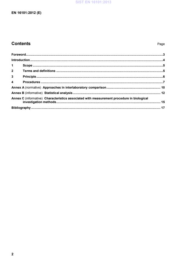 Characteristics associated with measurement procedure in biological investigation methods . 15Bibliography . 17 SIST EN 16101:2013