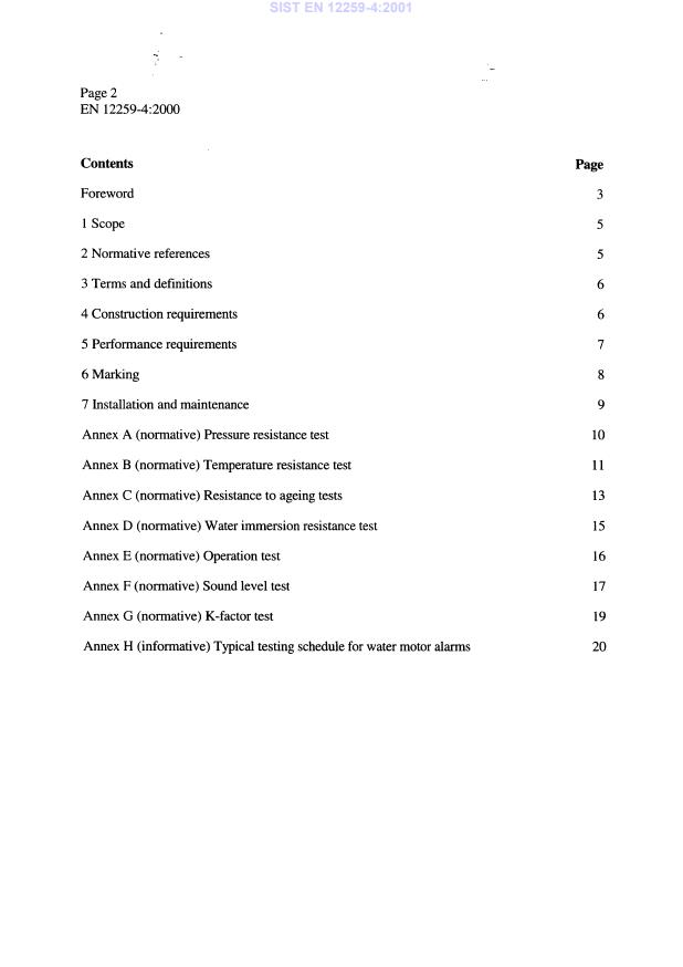EN 12259-4:2000 (CEN) is the European standard that specifies requirements for water motor alarms used in fixed firefighting systems. It covers the construction and performance criteria for water-driven alarm devices that operate in conjunction with alarm valves conforming to EN 12259-2, EN 12259-3 and EN 12259-9. The standard also provides type approval tests and a recommended test schedule for type approval testing. Auxiliary components or attachments to water motor alarms are explicitly excluded.