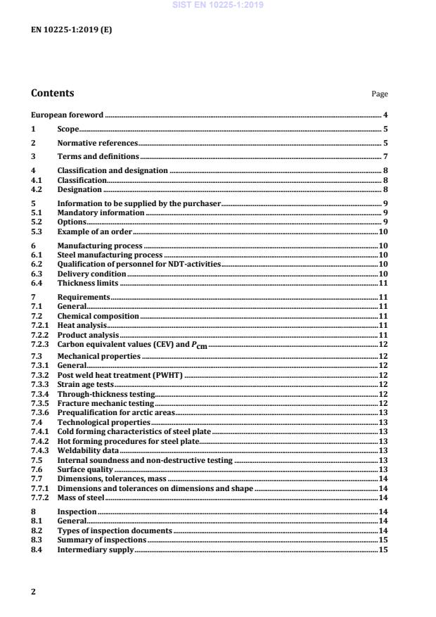 SIST EN 10225-1:2019 표준은 고정 해양 구조물용 용접 가능한 구조강에 대한 기술적 인도 조건을 규정하고 있습니다. 이 문서는 구조 철강 판재의 제조에 사용될 용접 가능한 구조강의 요구 사항을 명확하게 정의하고 있으며, 그 적용 범위는 해양 구조물에 적합한 강재를 포함합니다. 특히, 문서에는 사용 가능한 판재의 두께 제한이 구체적으로 명시되어 있으며, S355NLO는 200 mm까지, S355MLO, S420MLO, S460MLO, S500MLO는 120 mm까지, S420QLO, S460QLO, S500QLO, S550QLO, S620QLO, S690QLO는 150 mm까지 적용됩니다. 이 두께 제한은 기술적인 요구 사항이 유지되는 한 더 큰 두께의 합의도 가능하다는 점에서 유연성을 제공합니다. 이 표준은 기존 해양 부문에서 작동하도록 설계된 강재에 적용되며, 특히 북해 지역에 주로 적용되지만, 기타 지역에서도 지역 조건 (예: 설계 온도)을 충분히 고려한다면 적용될 수 있는 범용성을 가집니다. 또한, 아크틱 지역의 고정 해양 구조물에 대한 강재의 사전 자격에 대한 유익한 부록 F가 포함되어 있어, 특정 환경에서의 강재 선정을 위한 추가 지침을 제공합니다. SIST EN 10225-1:2019 표준은 690 MPa까지의 최소 항복 강도 규정을 포함하고 있고, -40 °C까지의 온도에서의 충격 특성에 대한 요구 사항도 포함되어 있어, 다양한 기후 조건에서도 신뢰성과 안전성을 확보할 수 있는 강재를 제공합니다. 이러한 강점들은 해당 표준이 해양 구조물의 안전성과 효율성을 보장하기 위한 필수 문서로 자리 잡을 수 있도록 하고 있습니다.