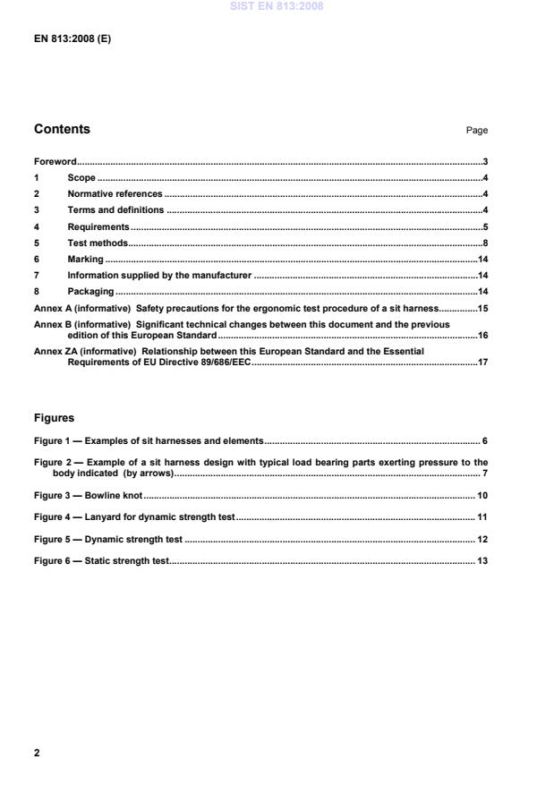 The EN 813:2008 standard, titled “Personal fall protection equipment - Sit harnesses,” provides comprehensive guidelines essential for the safe use of sit harnesses in specific applications such as restraint, work positioning, and rope access systems. Its scope explicitly outlines the requirements that manufacturers must meet concerning the design, testing, and marking of sit harnesses, ensuring that users receive well-manufactured and safe equipment. One of the standard's key strengths is its thorough approach to testing protocols, which ensures that sit harnesses can withstand the rigors expected in practical applications. This not only guarantees users have reliable protection while engaged in high-altitude work but also enhances confidence in the harness's performance during potentially hazardous activities. Furthermore, the standard emphasizes the importance of clear markings and information provided by manufacturers, which is crucial for ensuring usability and compliance with safety expectations in the field. Moreover, the distinct specification that sit harnesses are unsuitable for fall arrest purposes highlights the standard’s focus on user safety and proper application of equipment, thus preventing misuse that could lead to life-threatening situations. The delineation of appropriate contexts for sit harnesses fosters better understanding and responsible usage among professionals who rely on such equipment for safety while working at height. In summary, SIST EN 813:2008 serves as a vital framework for ensuring that sit harnesses are manufactured and used within defined safety parameters, underscoring its relevance in enhancing occupational safety in industries where personnel work suspended from structures. Its detailed requirements, rigorous testing standards, and clear communication guidelines collectively contribute to a decrease in workplace accidents and improve overall safety standards in relevant fields.