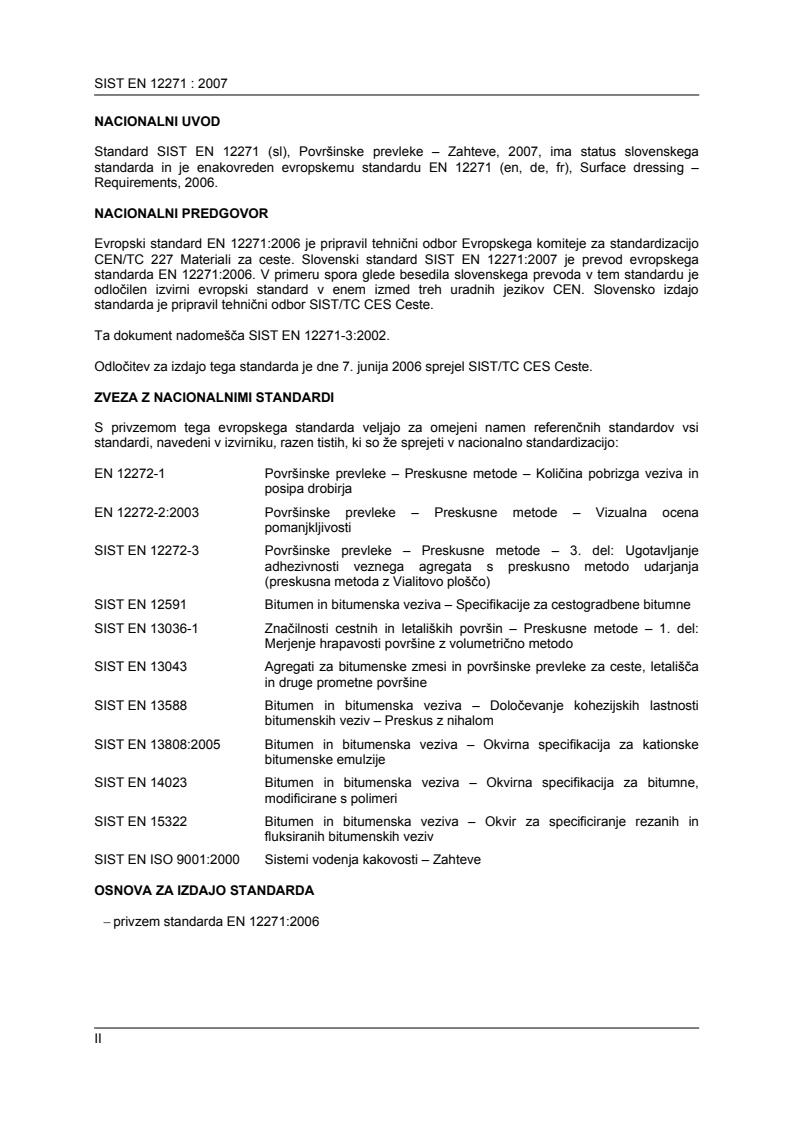2003-01.Slovenski inštitut za standardizacijo. Razmnoževanje celote ali delov tega standarda ni dovoljeno.Surface dressing - RequirementsPovršinske prevleke - ZahteveEnduits superficiels - SpécificationsOberflächenbehandlung - AnforderungenTa slovenski standard je istoveten z:EN 12271:2006SIST EN 12271:2007en93.080.20Materiali za gradnjo cestRoad construction materialsICS:SIST EN 12271-3:20021DGRPHãþDSLOVENSKI