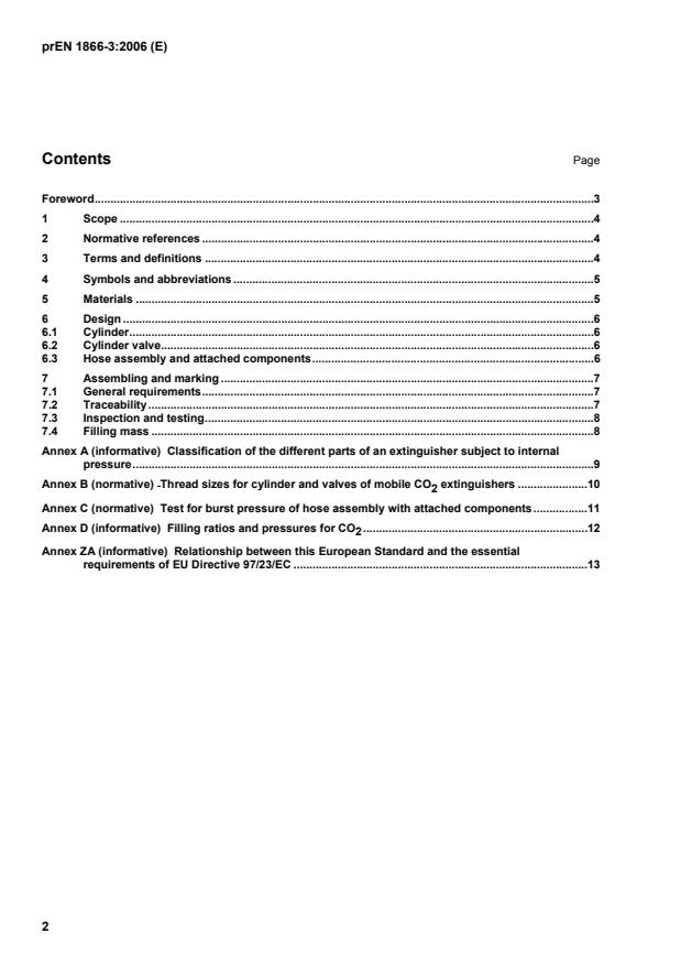 FprEN 1866-3 is a draft published by the European Committee for Standardization (CEN). Its full title is "Mobile fire extinguishers - Part 3: Additional requirements to EN 1866-1 for pressure resistance of CO2 extinguishers". This standard covers: This standard specifies the rules of design, assembling, testing and inspection during manufacturing of mobile CO2 fire extinguishers as far as pressure risk is concerned. NOTE: The classification of the different parts forming the assembly of the mobile extinguisher is given in Annex A.