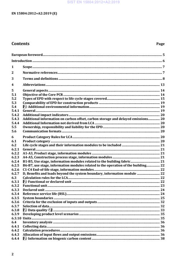 EN 15804:2012+A2:2019 is a standard published by the European Committee for Standardization (CEN). Its full title is "Sustainability of construction works - Environmental product declarations - Core rules for the product category of construction products". This standard covers: This European standard provides core product category rules (PCR) for Type III environmental declarations for any construction product and construction service. NOTE The assessment of social and economic performances at product level is not covered by this standard. The core PCR: - defines the parameters to be declared and the way in which they are collated and reported, - describes which stages of a product’s life cycle are considered in the EPD and which processes are to be included in the life cycle stages, - defines rules for the development of scenarios, - includes the rules for calculating the Life Cycle Inventory and the Life Cycle Impact Assessment underlying the EPD, including the specification of the data quality to be applied, - includes the rules for reporting predetermined, environmental and health information, that is not covered by LCA for a product, construction process and construction service where necessary, - defines the conditions under which construction products can be compared based on the information provided by EPD. For the EPD of construction services the same rules and requirements apply as for the EPD of construction products.