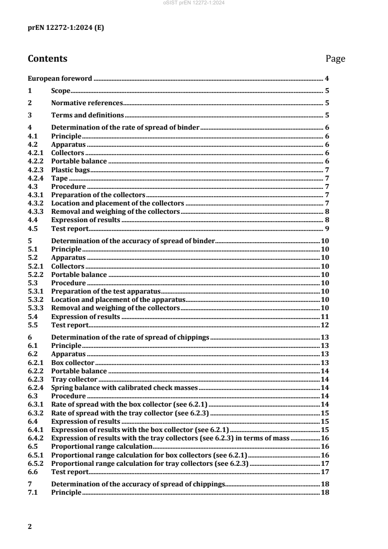 Keywords: surface dressing, EN 12272-1, test methods, rate of spread, accuracy of spread, binder sprayers, chipping spreaders, calibration, Factory Production Control, road construction materials.