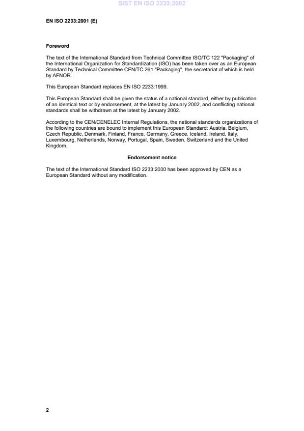 The text of the International Standard ISO 2233:2000 has been approved by CEN as a