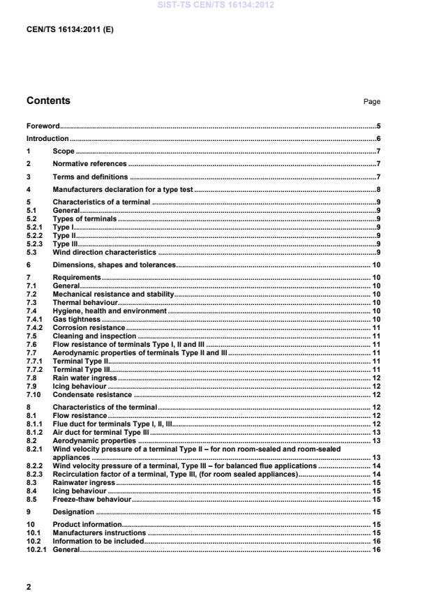 CEN/TS 16134:2011 is a technical specification published by the European Committee for Standardization (CEN). Its full title is "Chimney terminals - General requirements and material independent test methods". This standard covers: This Technical Specification specifies general requirements and material independent test methods for vertical terminals with different aerodynamic properties. This Technical Specification does not apply to material dependent test methods and to requirements and test methods related to a chimney. It is intended to be used as reference for product standards for terminals. NOTE For the designation, marking and product information, relating to the items of the terminals a proposal is included.