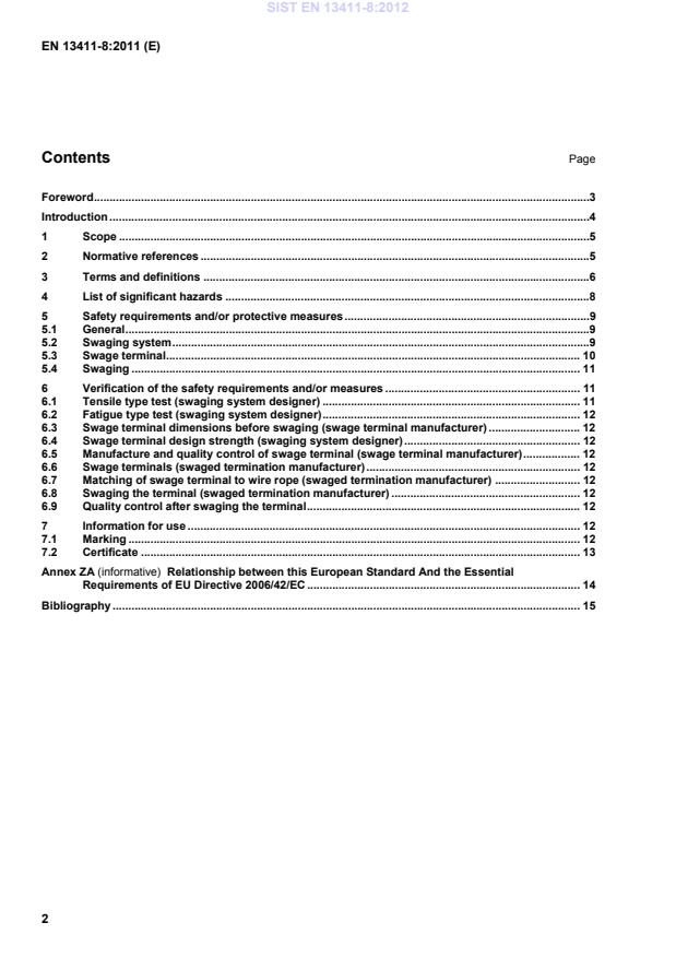 Relationship between this European Standard And the Essential Requirements of EU Directive 2006/42/EC . 14Bibliography . 15 SIST EN 13411-8:2012