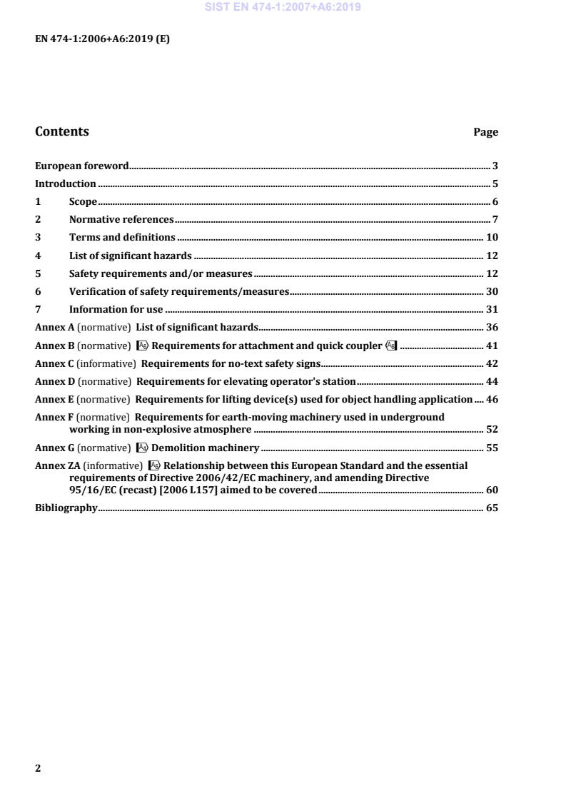 Ta evropski standard določa splošne varnostne zahteve za različne vrste strojev za zemeljska dela in je predviden za uporabo skupaj z enim od delov od 2 do 12 standarda EN 474. Deli od 2 do 12 standarda EN 474, specifični za posamezne stroje, ne navajajo ponovno zahtev iz standarda EN 474-1:2006+A1:2009, ampak dodajajo ali nadomeščajo zahteve za posamezno vrsto strojev.