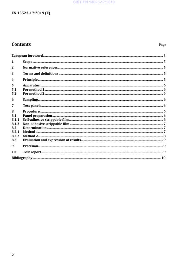 This part of the EN 13523 series specifies two methods for determining the numerical evaluation of the adhesion of strippable films which have previously been applied to an organic coating on a metallic substrate.