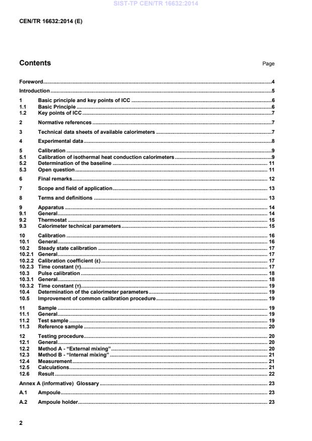 CEN/TR 16632:2014 is a technical report published by the European Committee for Standardization (CEN). Its full title is "Isothermal Conduction Calorimetry (ICC) for the determination of heat of hydration of cement: State of Art Report and Recommendations". This standard covers: 1 Basic principle and key points of ICC 1.1 Basic Principle The test method is designed to measure the heat of hydration of cement when mixed with water. The measurement takes place at essentially constant temperature, if the instrument and the measurement are well designed, therefore it is assumed to be the "isothermal heat of hydration of cement". An isothermal heat conduction calorimeter (here called calorimeter) consists of a thermostatic heat sink upon which two heat flow sensors are placed. The sample is placed in an ampoule that is placed in an ampoule holder that is in contact with one of the heat flow sensors, and an inert reference is placed in contact with the other. The sample ampoule and the reference ampoule are thermally connected by heat flow sensors to a thermostatic heat sink. The output from the calorimeter is the difference between the outputs from the sample heat flow sensor and the reference heat flow sensor. A general scheme of a heat conduction calorimeter is given in Figure 1. However the actual design of an individual instrument, whether commercial or home-built, may vary. (...) Most part of the calorimeters can measure the heat of hydration of samples mixed outside from the instrument therefore the heat produced during the mixing is not measured. It is not easy to solve this problem designing a calorimeter provided with an internally mixing device having the proper efficacy. 1.2 Key points of ICC When performing ICC measurements on cement samples some key points have to be considered and correctly managed: - Constant value of the temperature of the thermostat; - Stability of the temperature of the thermostat all over the test duration; - Control of the maximum difference between sample temperature and thermostat temperature (isothermal conditions); - The baseline of the instrument (measured with an inert sample of similar thermal properties of test sample) should be both repeatable and stable; - Calibration of the calorimeter. The method currently used is based on the joule effect produced by a resistor feed with an electrical current; no standard material for the calibration is available for the time being; - Check that the ampoule is vapour tight enough (so that endothermic thermal powers of evaporation do not influence the measurements).