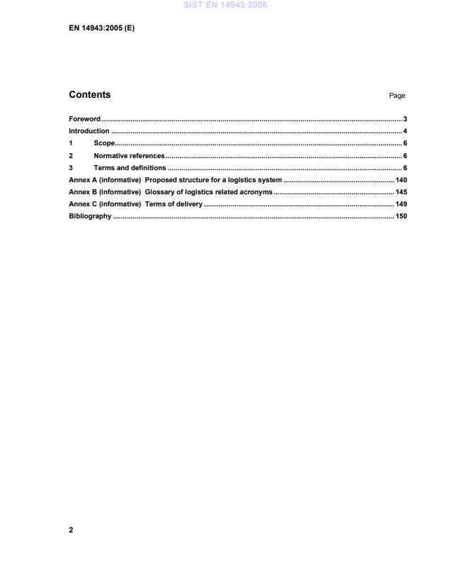 - Informative annexes: Annex A (proposed logistics system structure), Annex B (acronyms), Annex C (terms of delivery) and bibliography for further reference.