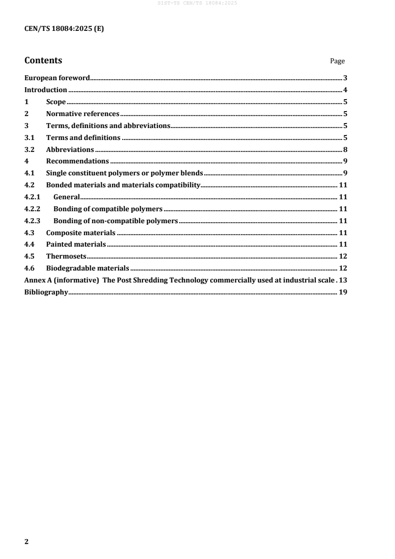 Keywords: CEN/TS 18084:2025, post shredder technology, vehicle plastics, design for recycling, end‑of‑life vehicles, ASR, recyclability, automotive recycling.