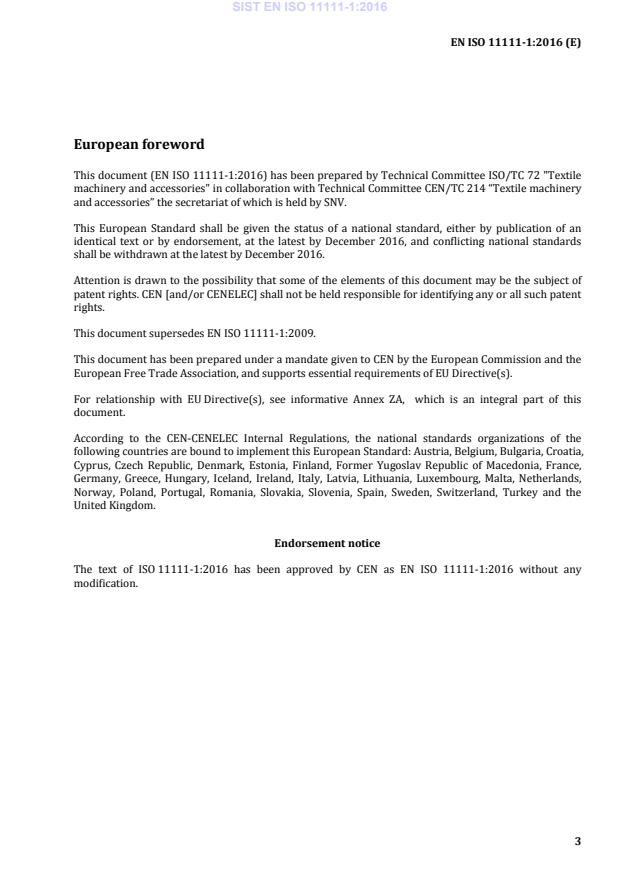 OPOMBA 1: Standard za določen tekstilni stroj je navadno sestavljen iz dveh delov: tega dela standarda ISO 11111 in drugega njegovega dela, ki ustreza posameznemu stroju. Vendar v primeru netkanih materialov, ki so zajeti v standardu ISO 11111-3, je treba upoštevati tudi standarde ISO 11111-2, ISO 11111-6 in ISO 11111-7.