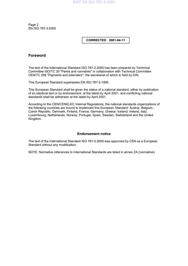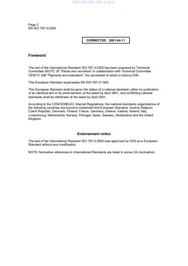 The text of the International Standard ISO 787-3:2000 was approved by CEN as a European