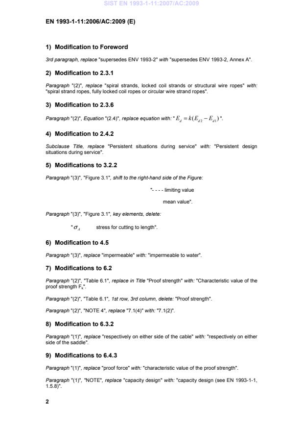 EN 1993-1-11:2006/AC:2009 is a corrigendum published by the European Committee for Standardization (CEN). Its full title is "Eurocode 3 - Design of steel structures - Part 1-11: Design of structures with tension components". This standard covers: TC - Modifications in Clauses 2, 3, 4, 6, 7 and 8 in the E mother reference version. 2013: Originator of XML version: first setup pilot of CCMC in 2012