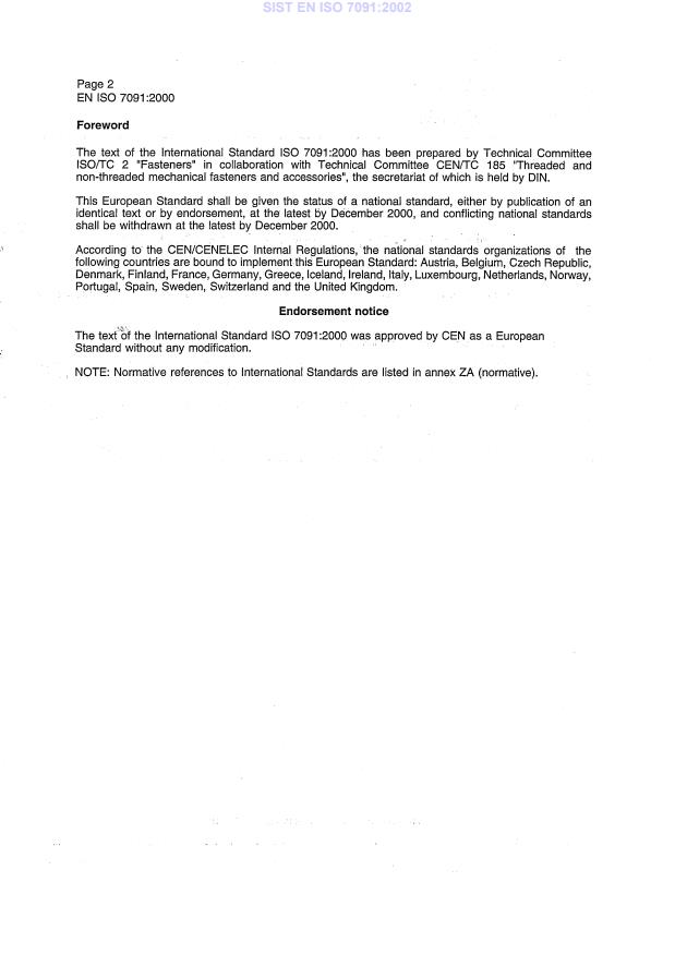 International Standard ISO 7091 was prepared by Technical Committee ISO/TC 2, Fasteners.