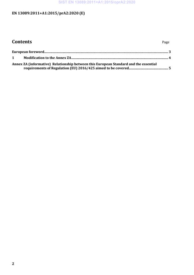 This draft amendment A2, if approved, will modify the European Standard EN 13089:2011+A1:2015. If this draft becomes an