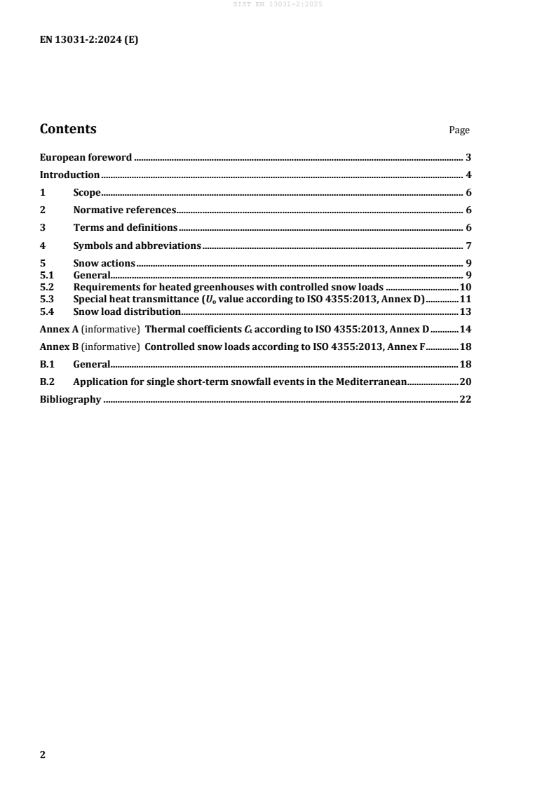 EN 13031-2:2024 is a standard published by the European Committee for Standardization (CEN). Its full title is "Greenhouses - Design and construction - Part 2: Greenhouses open to the public". This standard covers: This document specifies principles and requirements for the determination of controlled snow loads on the transparent cladding of greenhouses open to the public. This document can be applied either to the greenhouse or only to the transparent cladding system. Fire resistance-related aspects are not covered in this document.