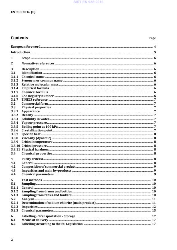 Keywords: EN 938:2016, sodium chlorite, drinking water, water treatment standard, CEN, purity criteria, test methods, labelling, storage, sampling.