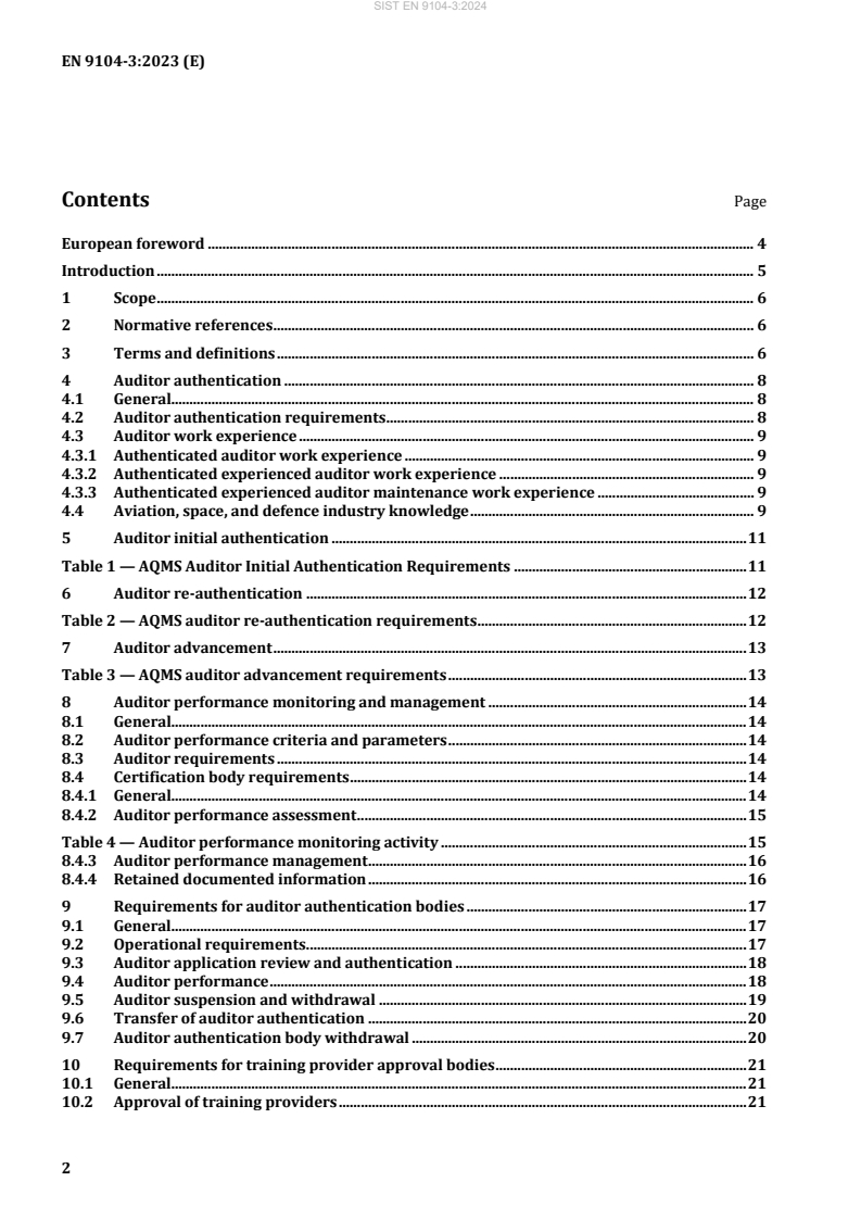 EN 9104-3:2023 is a standard published by the European Committee for Standardization (CEN). Its full title is "Aerospace series - Quality management systems - Part 3: Requirements for Aviation, Space, and Defence Auditor Training, Development, Competence, and Authentication". This standard covers: This document defines the minimum requirements for auditors, CBs, auditor authentication bodies (AABs), training provider approval bodies (TPABs), and training providers (TPs) who participate in the IAQG industry controlled other party (ICOP) scheme. The requirements in this document supplement those defined within the EN 9104-001, EN 9104-002, EN ISO/IEC 17021-1, and EN ISO/IEC 17021-3 standards. Data protection for the parties subject to this document and other relevant requirements of the ICOP scheme are managed via bi-lateral contracts between the joint controllers of the data.
