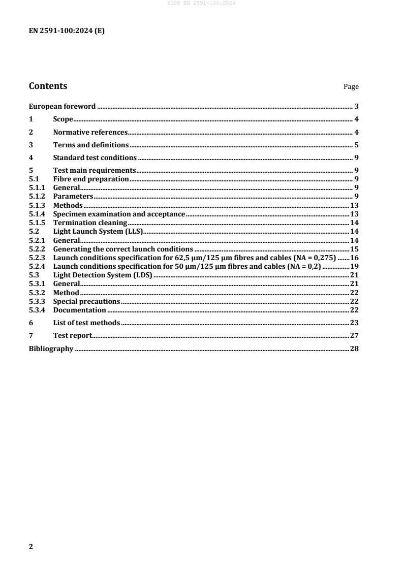 Keywords: EN 2591-100:2024, aerospace connectors, optical fibre test methods, light launch system, light detection system, fibre end preparation, insertion loss, return loss, multimode fibre.
