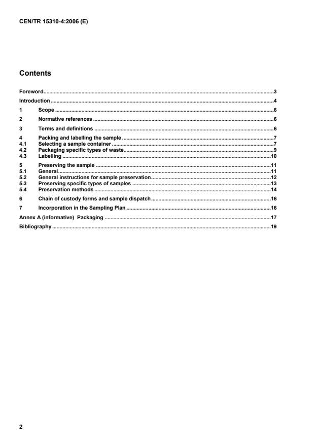 Keywords: CEN/TR 15310-4:2006, waste sampling, sample packaging, sample preservation, sample storage, sample transport, sampling plan, solid waste, liquid waste, sludge, chain of custody.