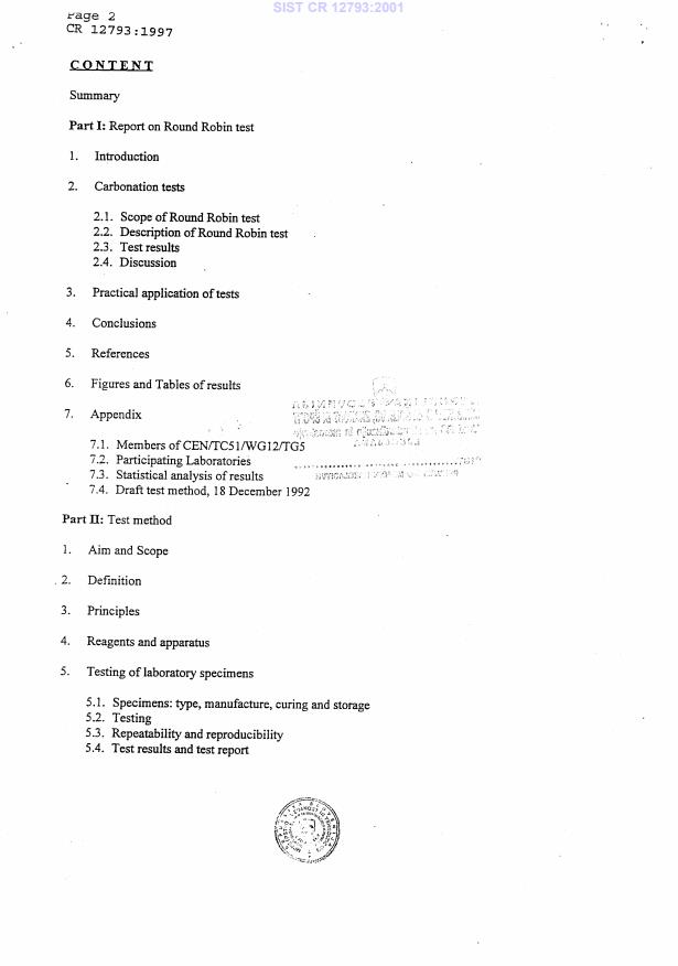 CR 12793:1997 sits within the body of European and national standards on concrete durability and testing methods. Users often apply it alongside other CEN/EN and national standards covering concrete sampling, cover measurement, and corrosion assessment. For definitive procedures and cross-references, obtain the full official standard from the national standards body (SIST) or CEN.