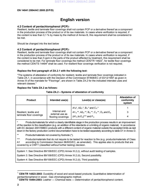 TC - Modification to 4.2 due to problems with European environmental legislation Addition to Corrigendum issued in May 2005.