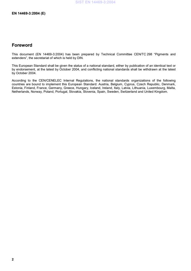 2003-01.Slovenski inštitut za standardizacijo. Razmnoževanje celote ali delov tega standarda ni dovoljeno.PSLJPHQWRYPigmente und Füllstoffe - Prüfung von Farbmitteln in weichmacherhaltigem Polyvinylchlorid (PVC-P) - Teil 3: Bestimmung des relativen Aufhellvermögens von WeißpigmentenPigments et matieres de charge - Essai des matieres colorantes dans le chlorure de polyvinyle plastifié (PVC-P) - Partie 3: Détermination du pouvoir colorant relatif des pigments blancsPigments and extenders - Testing of colouring materials in plasticized polyvinyl chloride (PVC-P) - Part 3: Determination of the relative tinting strength of white pigments83.040.30Pomožni materiali in aditivi za polimerne materialeAuxiliary materials and additives for plasticsICS:Ta slovenski standard je istoveten z:EN 14469-3:2004SIST EN 14469-3:2004en01-september-2004SIST EN 14469-3:2004SLOVENSKI