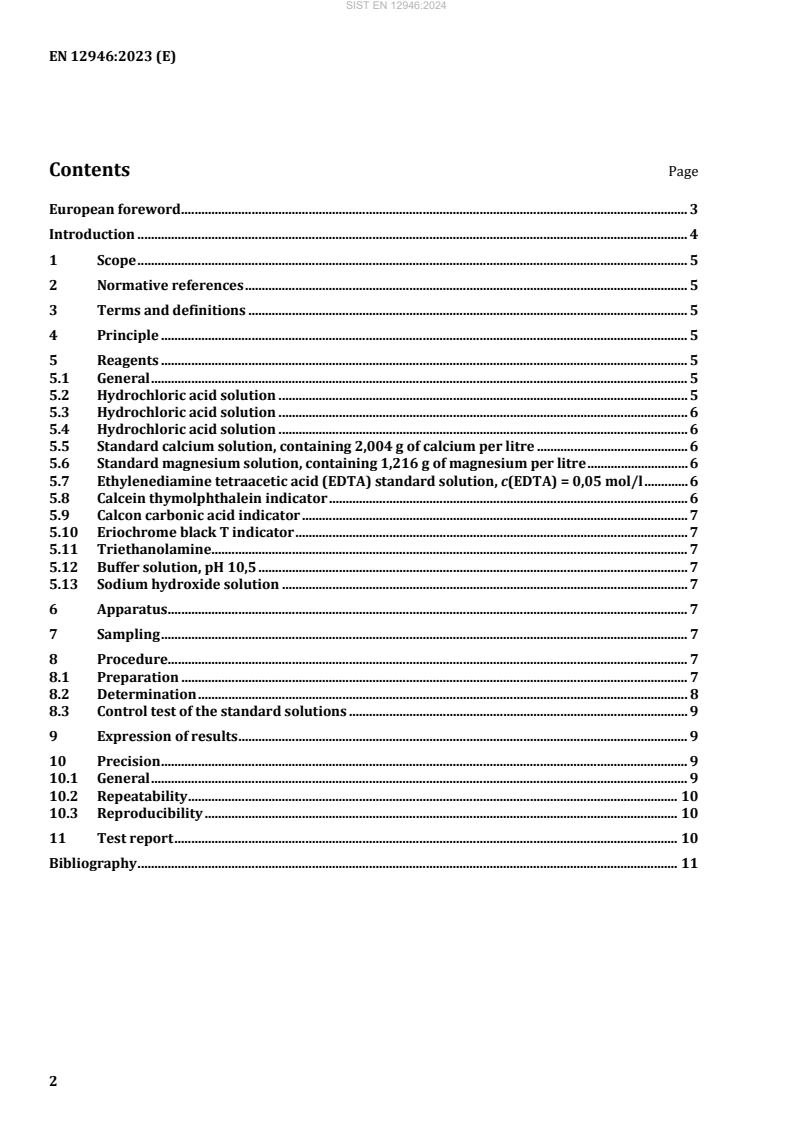 EN 12946:2023 is a standard published by the European Committee for Standardization (CEN). Its full title is "Liming materials - Determination of the calcium content and magnesium content - Complexometric method". This standard covers: TThis document specifies a complexometric method for the determination of the calcium content and the magnesium content of liming materials. It is not applicable to products with a mass fraction less than 2 % magnesium or those with a mass fraction more than 1 % P2O5 and is not applicable to silicate liming materials.