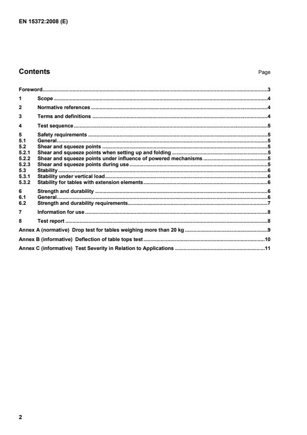 EN 15372:2008 is a standard published by the European Committee for Standardization (CEN). Its full title is "Furniture - Strength, durability and safety - Requirements for non-domestic tables". This standard covers: This European Standard specifies requirements for the safety, strength and durability of all types of non-domestic tables including those with glass in their construction. It does not apply to office tables or desks, tables for educational institutions and outdoor tables for which EN standards or drafts exist. With exception of the stability tests, this standard does not provide assessment of the suitability of any storage features included in non-domestic tables. It does not include requirements for the durability of castors and height adjustment mechanisms. It does not include requirements for electrical safety. It does not include requirements for the resistance to ageing, degradation.