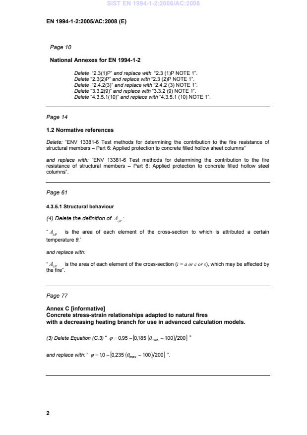 EN 1994-1-2:2005/AC:2008 is a corrigendum published by the European Committee for Standardization (CEN). Its full title is "Eurocode 4 - Design of composite steel and concrete structures - Part 1-2: General rules - Structural fire design". This standard covers: TC - Correction of references in national annexes, typographical improvement, change of equation in 4.3.5.1 and Annex C and E.2, designation in Table D.6 corrected 2013: Originator of XML version: first setup pilot of CCMC in 2012
