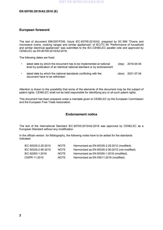 This amendment A2 modifies the European Standard EN 60705:2015; it was approved by CENELEC on 2018-07-04. CENELEC members