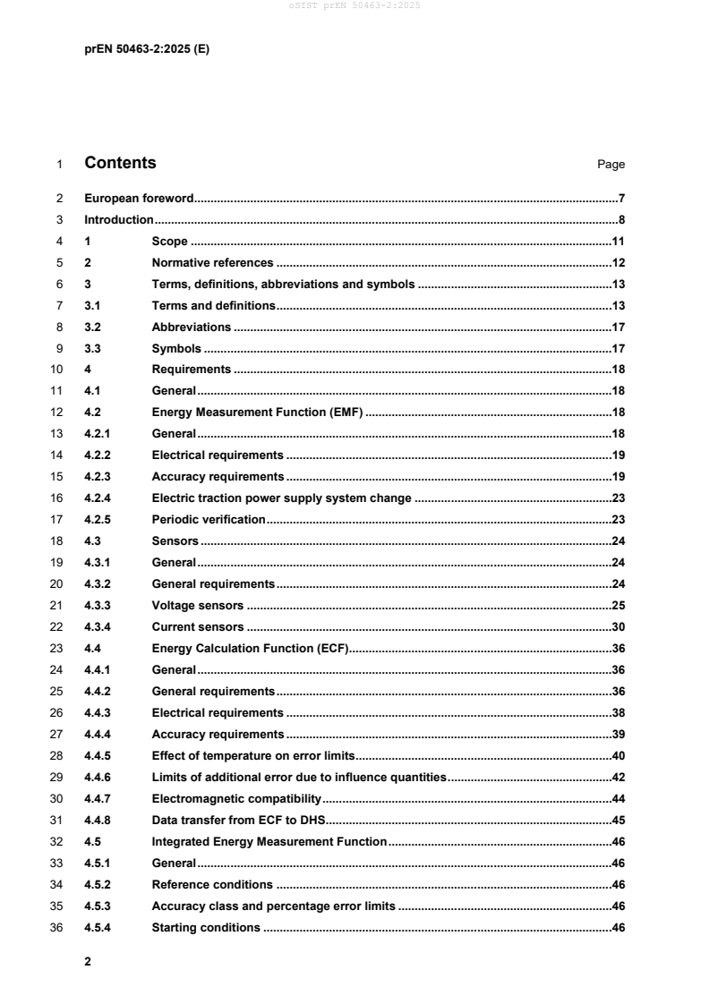 prEN 50463-2:2025 is a draft published by CLC. Its full title is "Railway applications - Energy measurement on board trains - Part 2: Energy measuring". This standard covers: EN 50463-2 covers the requirements applicable to the Energy Measurement Function (EMF) of an Energy Measurement System (EMS) for use on board traction units for measurement of energy supplied directly from/to the Contact Line system. EN 50463-2 also gives requirements for the Current Measurement Function (e.g. current sensor), the Voltage Measurement Function (e.g. voltage sensor) and the Energy Calculation Function (e.g. energy meter).