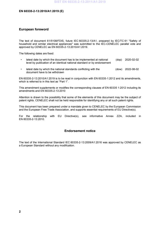 This amendment A1 modifies the European Standard EN 60335-2-13:2010; it was approved by CENELEC on 2016-05-13. CENELEC