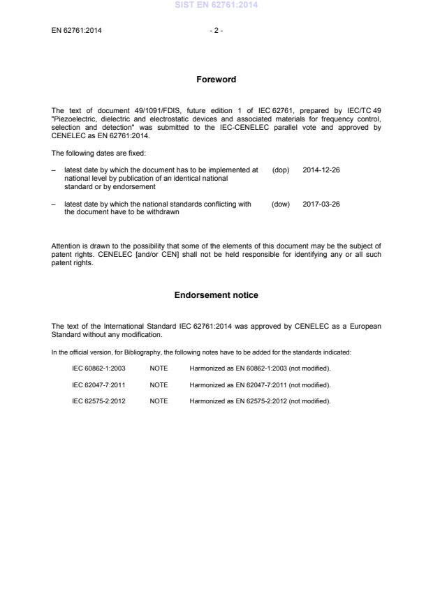 Ta slovenski standard je istoveten z: EN 62761:2014