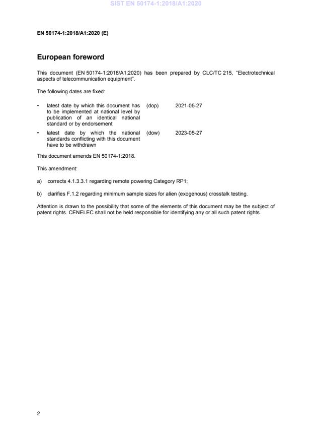 This document (EN 50174-1:2018/A1:2020) has been prepared by CLC/TC 215, “Electrotechnical