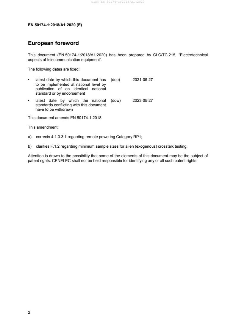 Ref. No. EN 50174-1:2018/A1:2020 E