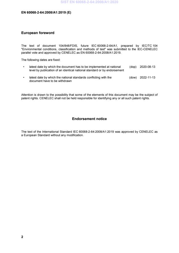This amendment A1 modifies the European Standard EN 60068-2-64:2008; it was approved by CENELEC on 2019-11-13. CENELEC