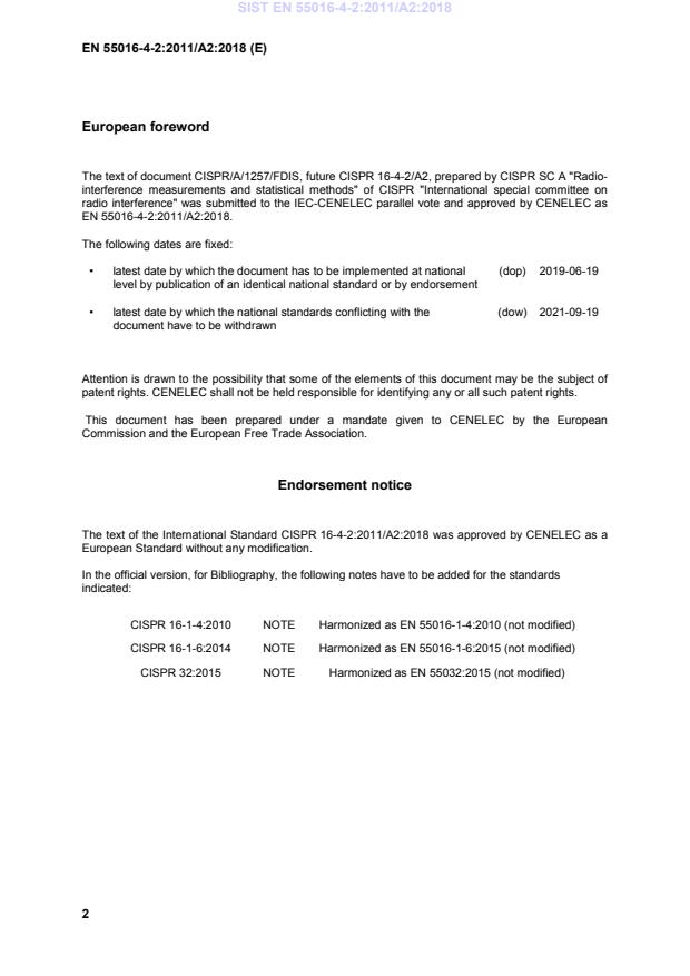 This amendment A2 modifies the European Standard EN 55016-4-2:2011; it was approved by CENELEC on 2018-09-19. CENELEC
