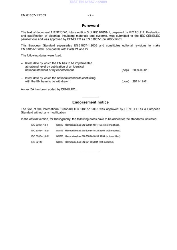 (dow) 2011-12-01 Annex ZA has been added by CENELEC. __________ Endorsement notice The text of the International Standard IEC 61857-1:2008 was approved by CENELEC as a European Standard without any modification. In the official version, for Bibliography, the following notes have to be added for the standards indicated: IEC 60034-18-1 NOTE