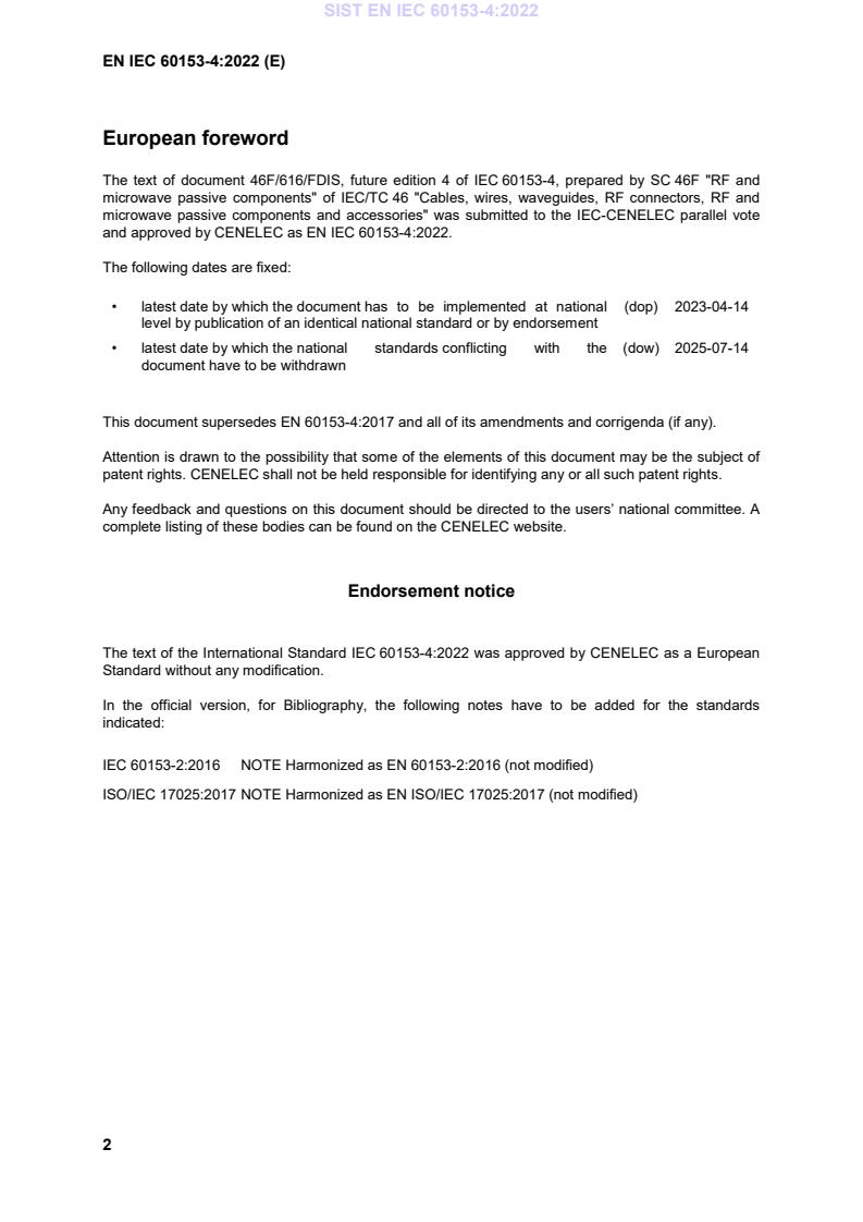 Keywords: EN IEC 60153-4:2022, hollow metallic waveguides, circular waveguides, waveguide specifications, CENELEC, CLC.