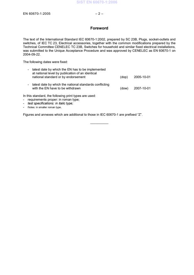 Ta slovenski standard je istoveten z: EN 60670-1:2005