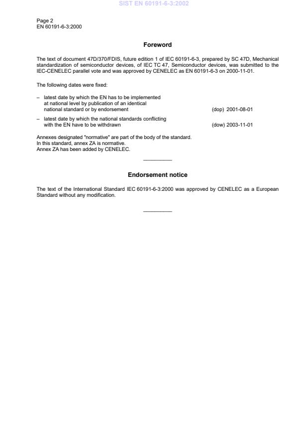 In this standard, annex ZA is normative. Annex ZA has been added by CENELEC. __________ Endorsement notice The text of the International Standard IEC 60191-6-3:2000 was approved by CENELEC as a European Standard without any modification. __________ SIST EN 60191-6-3:2002