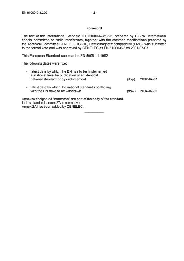to the formal vote and was approved by CENELEC as EN 61000-6-3 on 2001-07-03.
