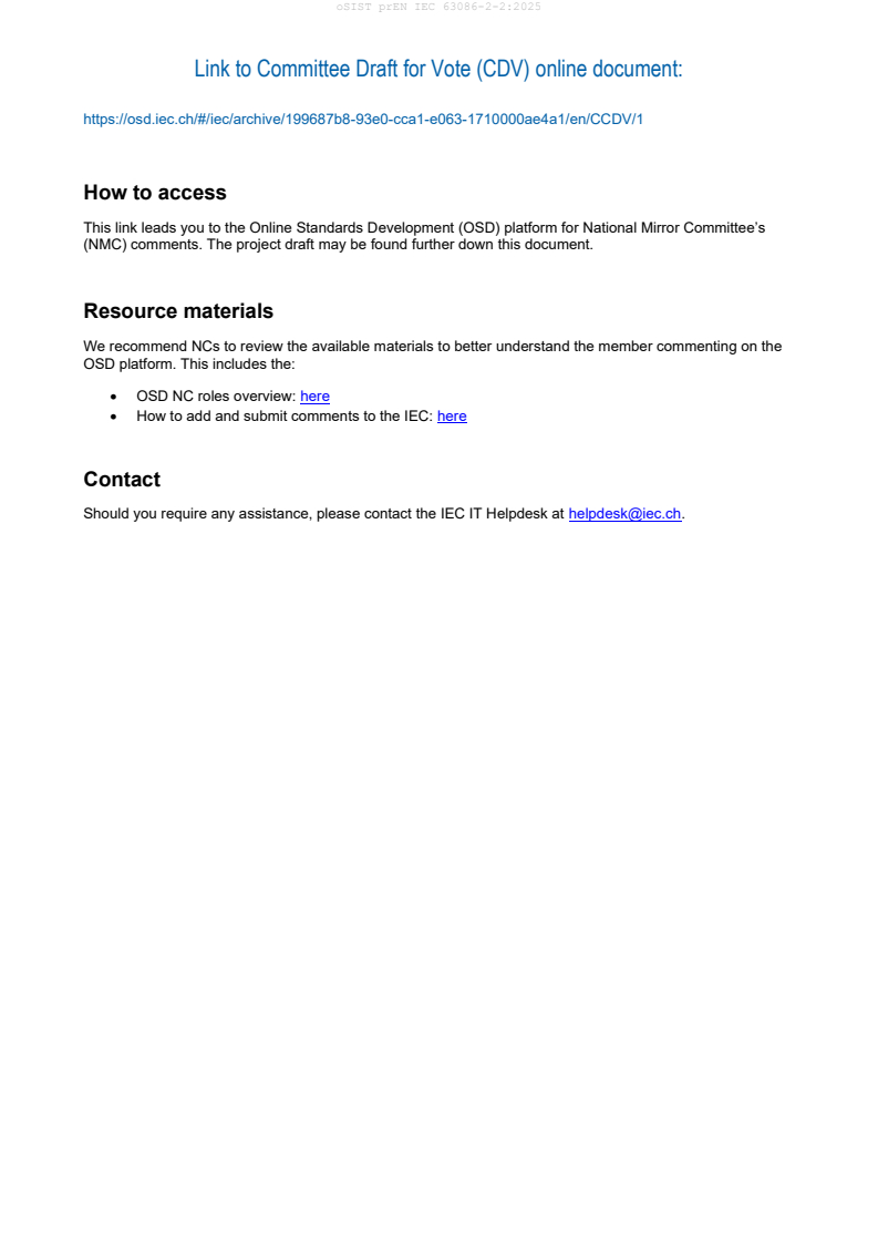 Note: prEN IEC 63086-2-2:2025 was circulated for IEC‑CENELEC parallel voting as a CDV and remains subject to revision until finalized.